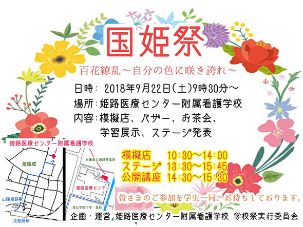 平成30年5月2日に「看護の力で守ろう心と体の健康」をテーマにJR姫路駅・イオンタウン姫路・テラッソ・姫路医療センター・イーグレ姫路の5か所に分かれて地域の方々や観光に来ている方々に向けた看護活動を行いました。たくさんの方に参加していただき、ご自身の健康法や工夫していることなどを話していただき、とても学びになりました。この活動が健康に関心を持ってもらうきっかけになればうれしく思います。